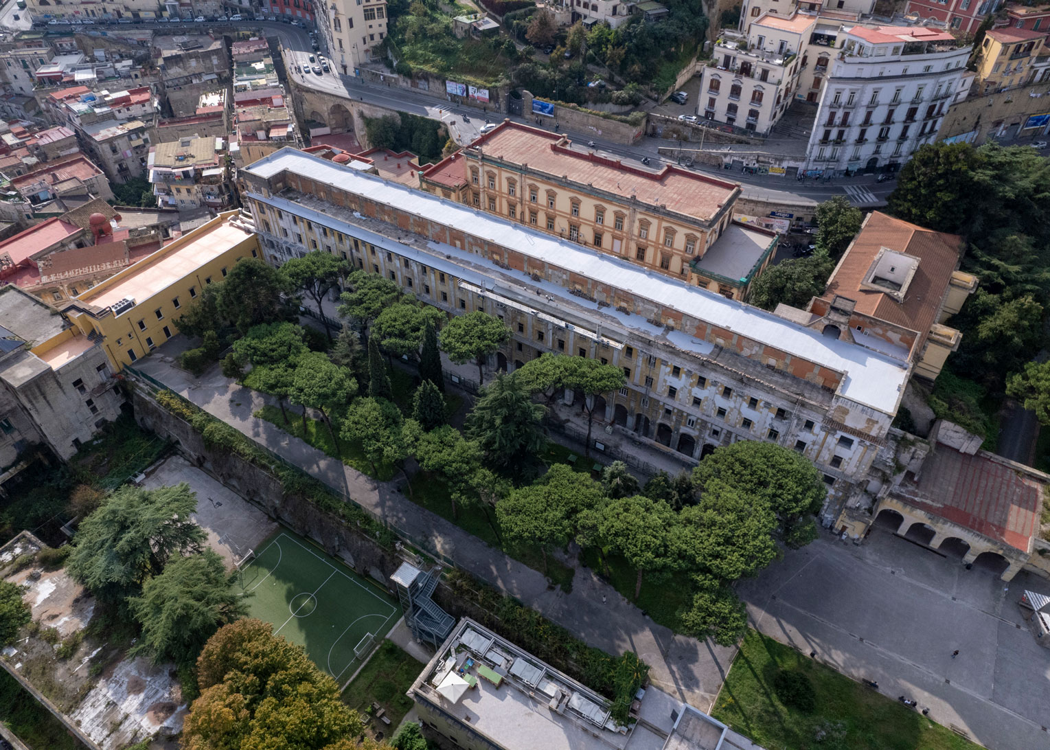 La rigenerazione è stata concepita in un arco di cinque anni (2023-2028), con un’articolazione per fasi progressive. I primi interventi sono stati avviati nel 2023 e hanno riguardato la messa in sicurezza e la riapertura degli accessi. I lavori di rifunzionalizzazione sono cominciati nell’agosto 2024 e una prima porzione del complesso è stata riaperta al pubblico a dicembre dello stesso anno. Nel frattempo, è stato costruito un quadro amministrativo e istituzionale condiviso tra Comune di Napoli, Agenzia del Demanio e Soprintendenza, che ha consentito l’attivazione del progetto in tutte le sue funzioni. Gli interventi hanno previsto una riattivazione progressiva, con soluzioni leggere e reversibili, nel rispetto della struttura storica e della comunità.